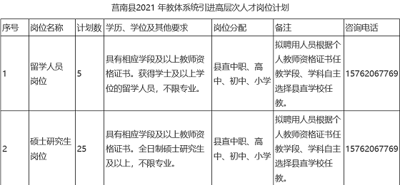 附件:莒南縣2021年教體系統引進高層次人才崗位計劃