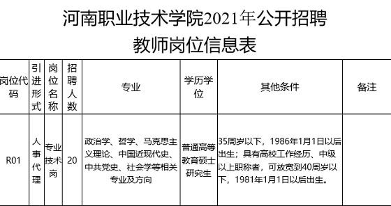 附件:1.河南職業技術學院2021年公開招聘教師崗位信息表