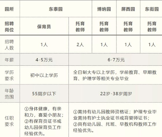 因春季托育園新增班級開班需要,面向社會公開招聘教師、保育員,F將招聘條件及相關事項公告如下: