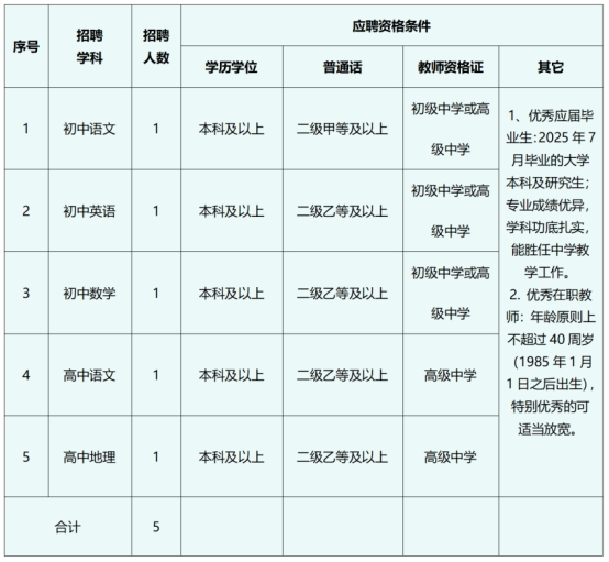 5.語文學科普通話二級甲等及以上,其他學科普通話二級乙等及以上。