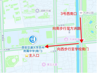 1.報考高中(A101-A115)、初高中(B201-B203)、初中(C301-C315)崗位的,考點為:西安交通大學蘇州附屬中學方洲路校區(蘇州工業園區方洲路598號)。為保障考點秩序,筆試當天僅開放南門(方洲路598號)供考生進出,其他校門暫不開放。