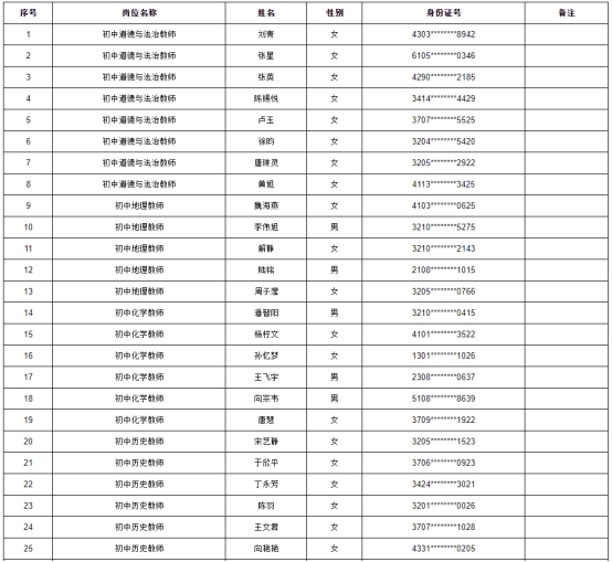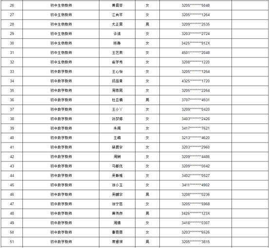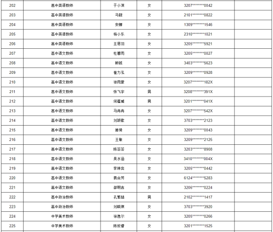 根據《2025年蘇州高新區教育系統選聘優秀畢業生公告》要求,經過報名、資格初審、考試、資格復審,體檢和考察合格,擬錄用劉青等227名同志,現予以公示: