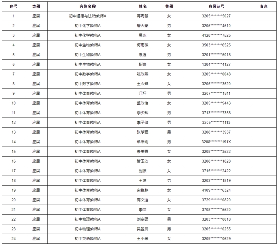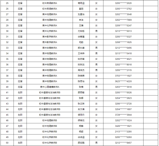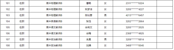 根據《2025年蘇州高新區教育系統第二批公開招聘事業編制教師公告》要求,經過報名、資格初審、考試、資格復審,體檢和考察合格,擬錄用蔣陶慧等108名同志,現予以公示: