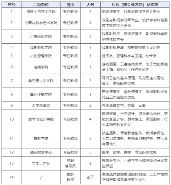 南京傳媒學(xué)院2025年招聘崗位計(jì)劃表