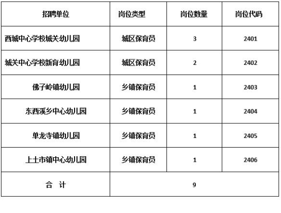 2.鄉鎮保育員崗位:年齡40周歲以下(1984年8月31日及以后出生),初中及以上文化程度;熱愛幼兒,有責任心,無任何傳染病。