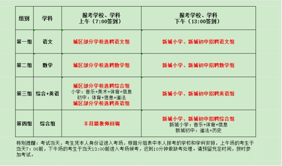 面試當天,考生按照《2025年豐縣新城實驗小學、新城初級中學、城區部分學校選聘教師、豐縣籍教師回調分組》(附件1)的要求,上午場的考生于當天7:00前,下午場的考生于當天13:00前進入考場候考,遲到10分鐘(以到達考場簽到為準)做缺考處理,取消面試資格。面試實行全天封閉管理,考生須自覺服從工作人員的安排。