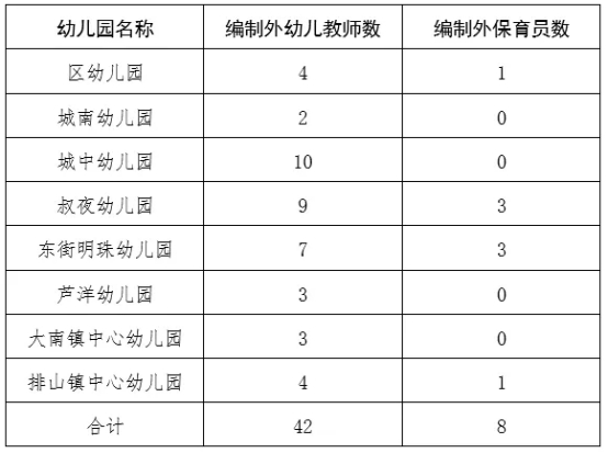 (二)2020年以來公開招聘擇崗在本區鄉鎮公辦幼兒園編制外幼兒教師、保育員。