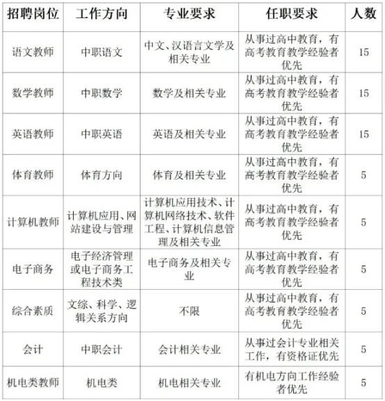 (1)報(bào)名專(zhuān)業(yè)教師崗位有企業(yè)工作經(jīng)歷,具備高級(jí)技能等級(jí)證書(shū)者優(yōu)先;報(bào)名語(yǔ)數(shù)外專(zhuān)業(yè)教師崗位,有語(yǔ)文、數(shù)學(xué)、英語(yǔ)高中考試輔導(dǎo)經(jīng)歷者優(yōu)先。