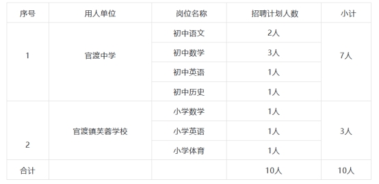 根據《瀏陽市機關事業單位編外合同制人員管理辦法》(瀏編委發〔2021〕67號)文件精神,瀏陽市官渡鎮教育發展中心決定面向社會公開招聘編外合同制教師10名,現就有關事項公告如下: