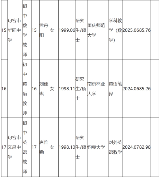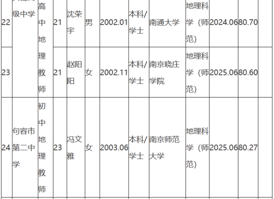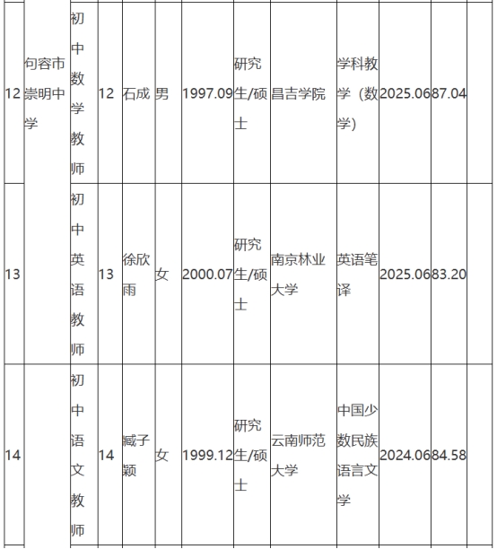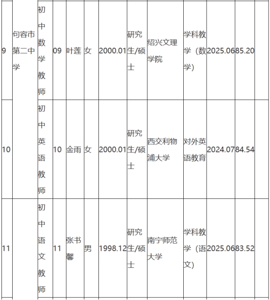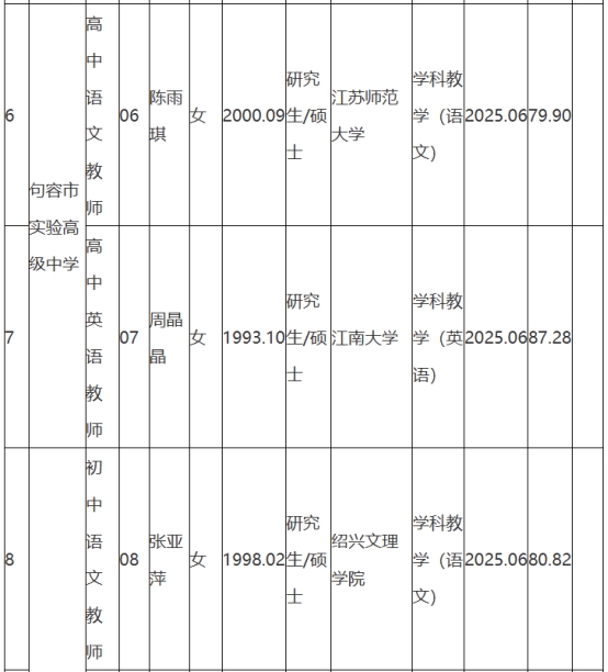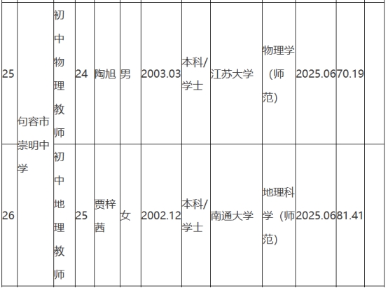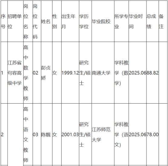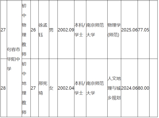 根據(jù)《句容市教育局所屬學(xué)校2025年第一批校園公開招聘教師公告》(鎮(zhèn)句事招公告〔2024〕8號)經(jīng)資格審查、面試、體檢和考察,現(xiàn)將句容市教育局所屬學(xué)校2025年第一批校園招聘擬聘用人員名單予以公示,公示時間2025年8月25日-9月2日。