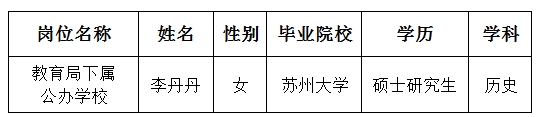 根據《2025年蘇州市吳中區教育系統公開招聘事業編制教師公告》的規定,經公開報名、筆試、面試、體檢和考察等程序,確定李丹丹同志(因產后延期體檢,目前已體檢合格)為擬錄用人員,現予以公示,公示時間為2025年8月26日至2025年9月3日。