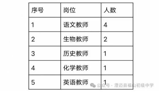 (五)最終聘用人員由澄邁縣教育局統一簽訂勞動合同,并派駐至澄邁縣福山初級中學工作。