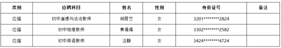 根據《2025年蘇州高新區教育系統選聘優秀畢業生公告》要求,經過報名、資格初審、考試、資格復審,體檢和考察合格,擬錄用胡君竺等3名同志,現予以公示: