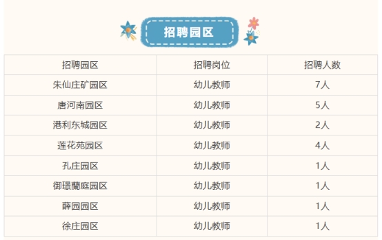 (5)其他要求:具有良好的師德表現(xiàn)和專業(yè)素質(zhì)、服從園內(nèi)的工作安排、有過(guò)幼師從業(yè)經(jīng)驗(yàn)者優(yōu)先。