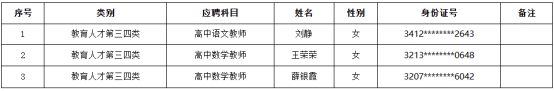 根據《2025年蘇州高新區教育系統公開招聘事業編制高層次、緊缺型教育人才和競賽輔導教師公告》要求,經過報名、資格初審、考試、資格復審,體檢和考察合格,擬錄用劉靜等3名同志,現予以公示: