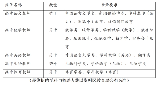 (正式招聘要求以崇明區教育局公布為準)