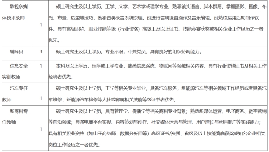 5.具備崗位所需學歷水平和職業技能的要求,符合學校招聘崗位的其他規定要求。