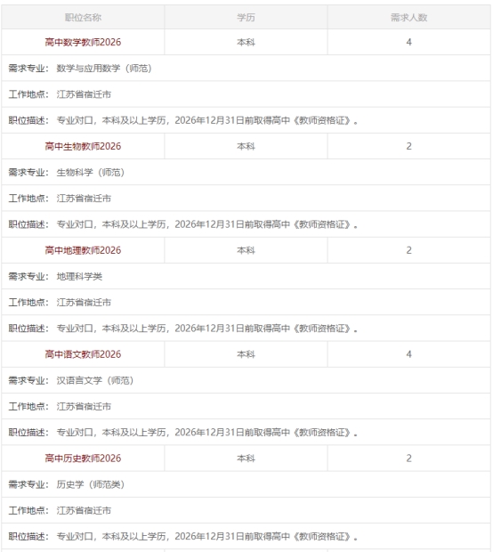 江蘇省泗陽(yáng)桃州中學(xué)2025年秋季招聘簡(jiǎn)章