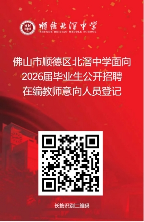 北滘中學(xué)面向2026屆畢業(yè)生公開招聘即將啟動!我們誠聘多個學(xué)科優(yōu)秀教師,一旦錄用即納入公辦學(xué)校事業(yè)單位編制。更廣闊的舞臺為你搭建,更優(yōu)質(zhì)的資源為你提供!