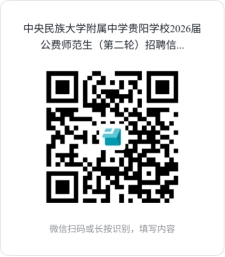 1.凡符合應(yīng)聘條件者,請(qǐng)點(diǎn)擊下方鏈接(https://f.wps.cn/g/klKlCfdj/)或掃下方二維碼填寫(xiě)《中央民族大學(xué)附屬中學(xué)貴陽(yáng)學(xué)校2026屆公費(fèi)師范生(第二輪)招聘信息表》,填寫(xiě)時(shí)請(qǐng)保證所提供的個(gè)人信息真實(shí)有效,若因提供虛假信息或隱瞞相關(guān)情況影響錄用的,后果自行承擔(dān)。