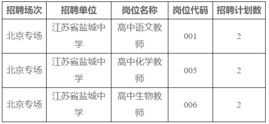 根據2025年10月23日發布的《江蘇省鹽城市教育局直屬學校2025年下半年校園公開招聘具有碩士研究生及以上學歷學位優秀青年人才公告》,現將北京專場未完成的招聘計劃及有關事項公告如下: