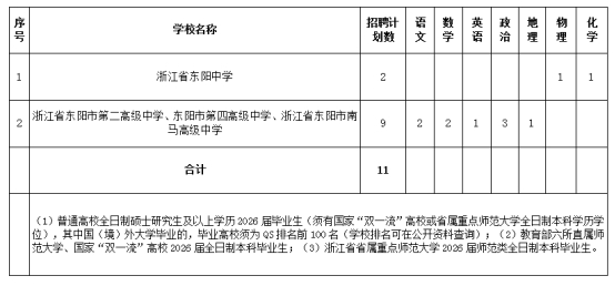 1.政治素質好,遵紀守法,品行端正,身心健康,有志于長期在東陽市從事教育教學工作,有較強的敬業精神和團隊協作精神,工作服從組織安排和調配,具有中華人民共和國國籍。