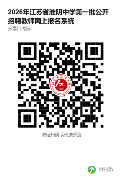 (1)利用微信掃描下方二維碼,跳轉(zhuǎn)至江蘇省淮陰中學(xué)面向2026屆普通高校畢業(yè)生公開招聘教師報(bào)名頁面,按要求填寫相關(guān)信息并上傳相關(guān)附件。