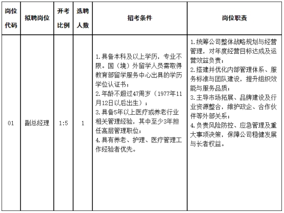 揚州頤揚健康養老管理有限公司副總經理1名。