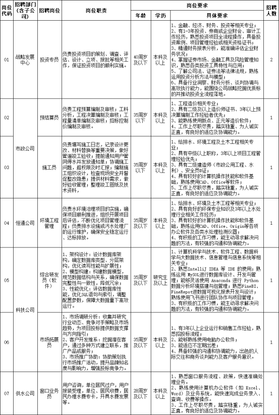 為適應公司高質量發展要求,建設高素質、專業化人才隊伍,按照相關政策規定,現面向社會公開招聘工作人員8名,現將有關事項公告如下: