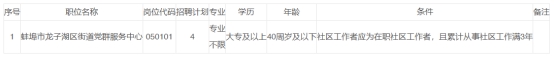 附件:《龍子湖區面向社區工作者公開招聘事業單位工作人員崗位情況一覽表》