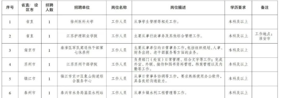 江蘇省提供6個事業單位招聘崗位(崗位信息詳見附件1),每個崗位招聘1人。