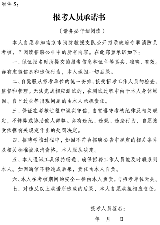 1、此次政府專職消防員招聘由南京市消防救援支隊直接組織,信息以南京市消防救援支隊微信公眾號發布為準,不委托任何代理機構或個人開展招聘工作;本次招聘不指定輔導用書,不收取任何報名考試費用;