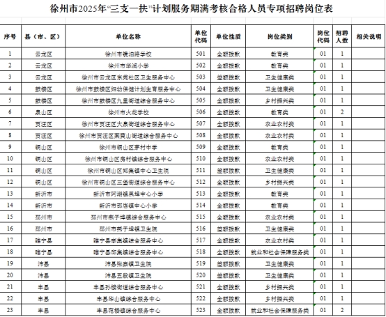 附件:《徐州市2025年“三支一扶”計劃服務(wù)期滿考核合格人員專項招聘崗位表》