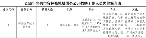 4、具備報考崗位所要求的其他條件,詳見附件1《2025年宜興市官林鎮鎮屬國企公開招聘工作人員崗位簡介表》。