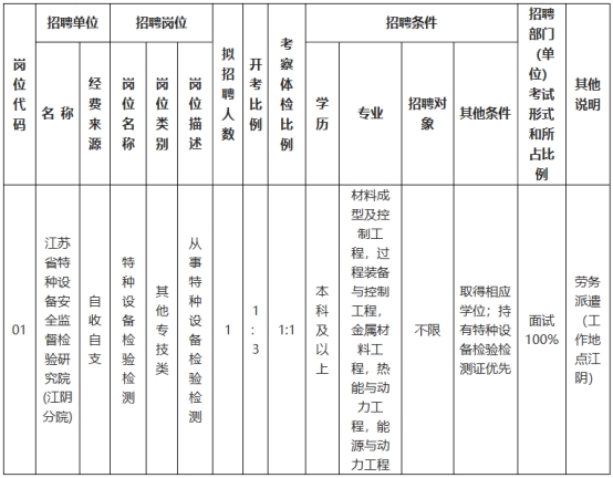 本次招聘解釋權屬江蘇省特種設備安全監督檢驗研究院江陰分院。