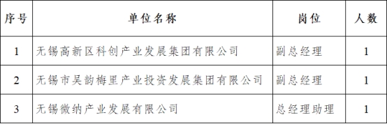 為進(jìn)一步加大引育創(chuàng)新人才力度,加強(qiáng)區(qū)屬國有企業(yè)領(lǐng)導(dǎo)班子和人才隊(duì)伍建設(shè),經(jīng)研究,無錫高新區(qū)(新吳區(qū))面向社會(huì)公開選聘國有企業(yè)領(lǐng)導(dǎo)人員3名,現(xiàn)將有關(guān)事項(xiàng)公告如下: