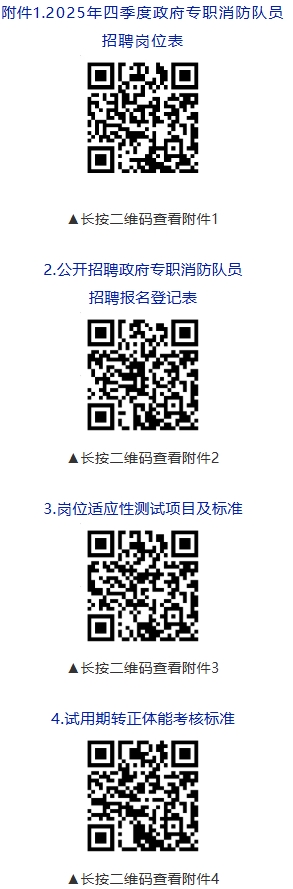 本次招錄崗位包括:戰(zhàn)斗員、執(zhí)勤車駕駛員(相關(guān)要求詳見(jiàn)附件1)。